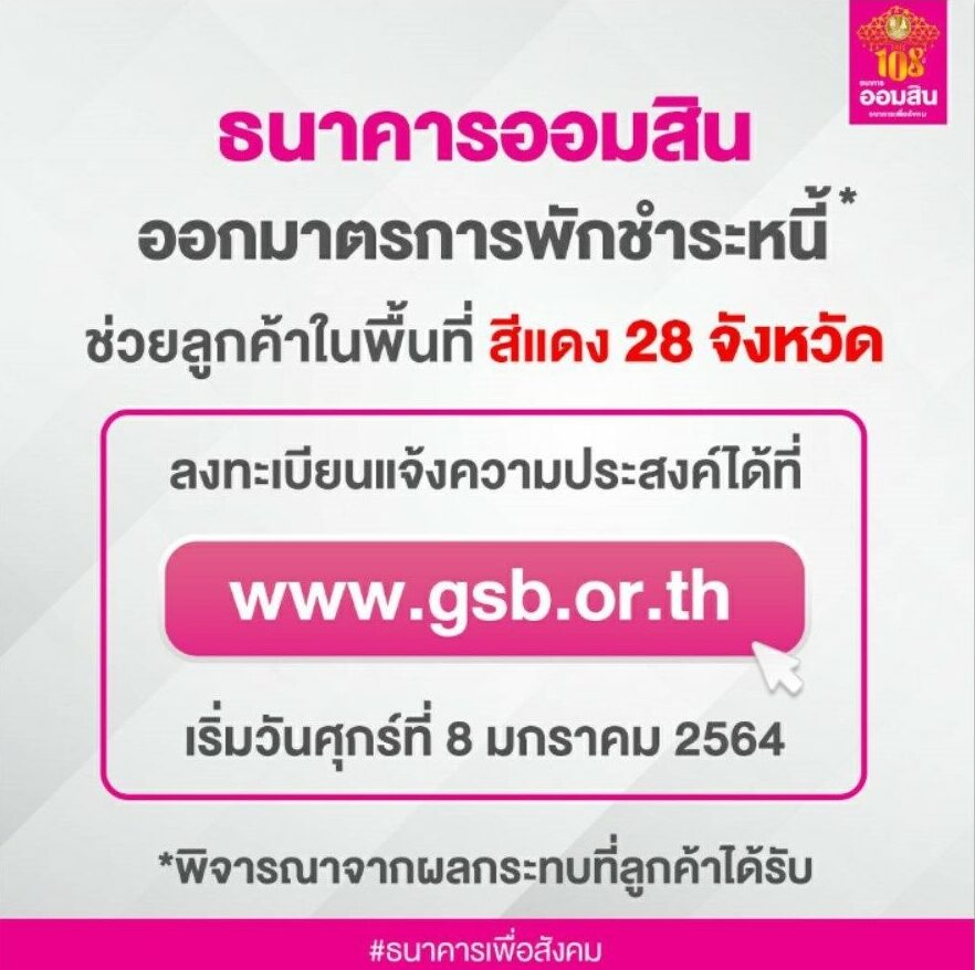 Source: nhaidee.com มาตรการพักหนี้ ออมสิน ช่วยพื้นที่สีแดง 28 จังหวัด เปิดลงทะเบียนวันแรกวันนี้วันแรก หลังพบลูกค้ากว่า 1.9 ล้านราย ได้รับผลกระทบจากโควิดระบาด